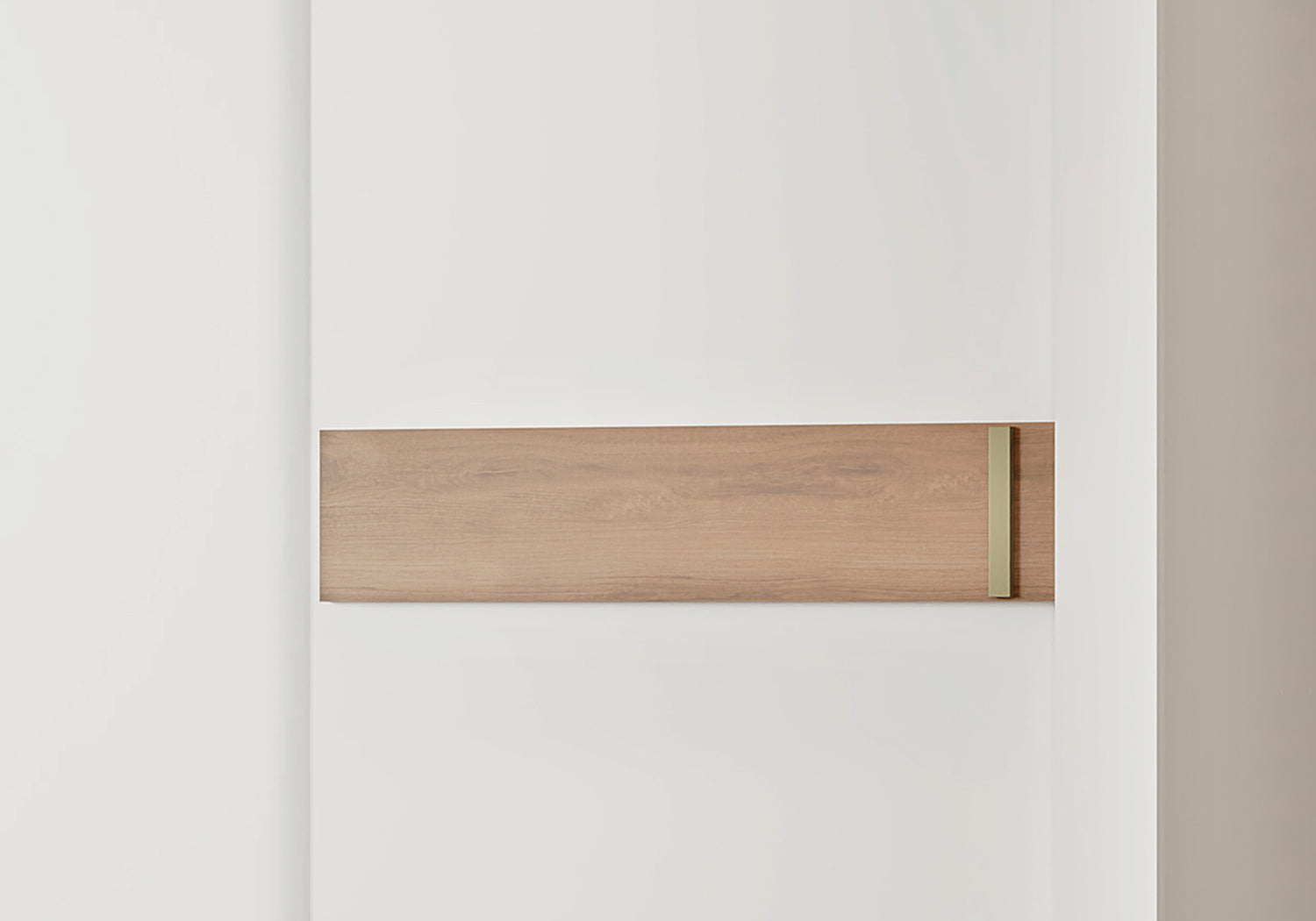 El Clóset Vivacce es la mezcla perfecta de funcionalidad y diseño moderno. Su acabado en blanco transmite amplitud y luminosidad, mientras que el detalle en tono canela añade calidez y un contraste elegante que realza la decoración del dormitorio.
