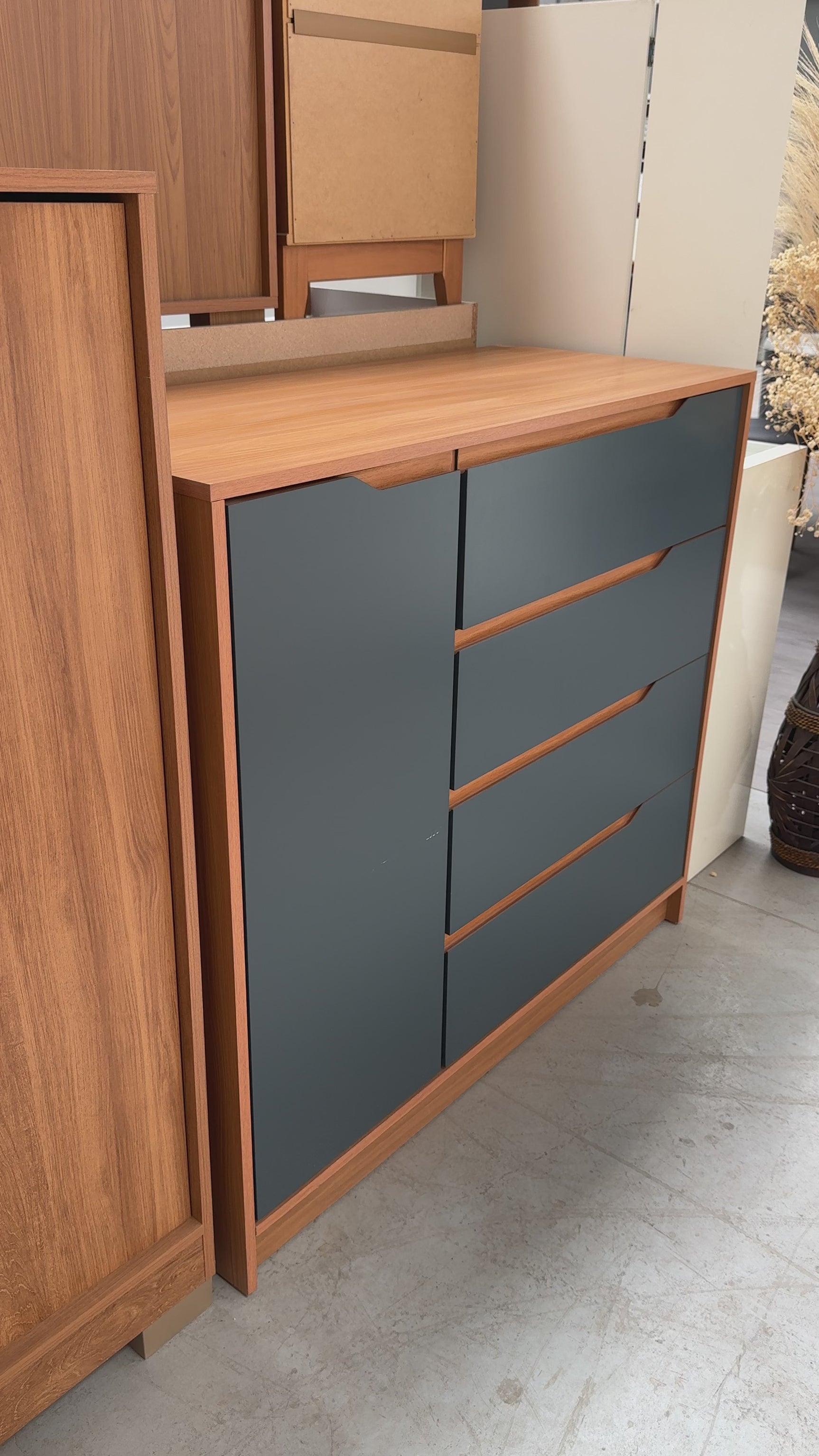Diseñada con foco en la calidad y resistencia, esta cómoda cuenta con una estructura sólida y terminaciones impecables que aseguran durabilidad con el uso diario. Sus cuatro cajones amplios permiten organizar con facilidad ropa, accesorios o documentos, mientras que su puerta lateral con repisa interna brinda espacio adicional para guardar objetos más grandes o mantener todo fuera de vista de forma ordenada.