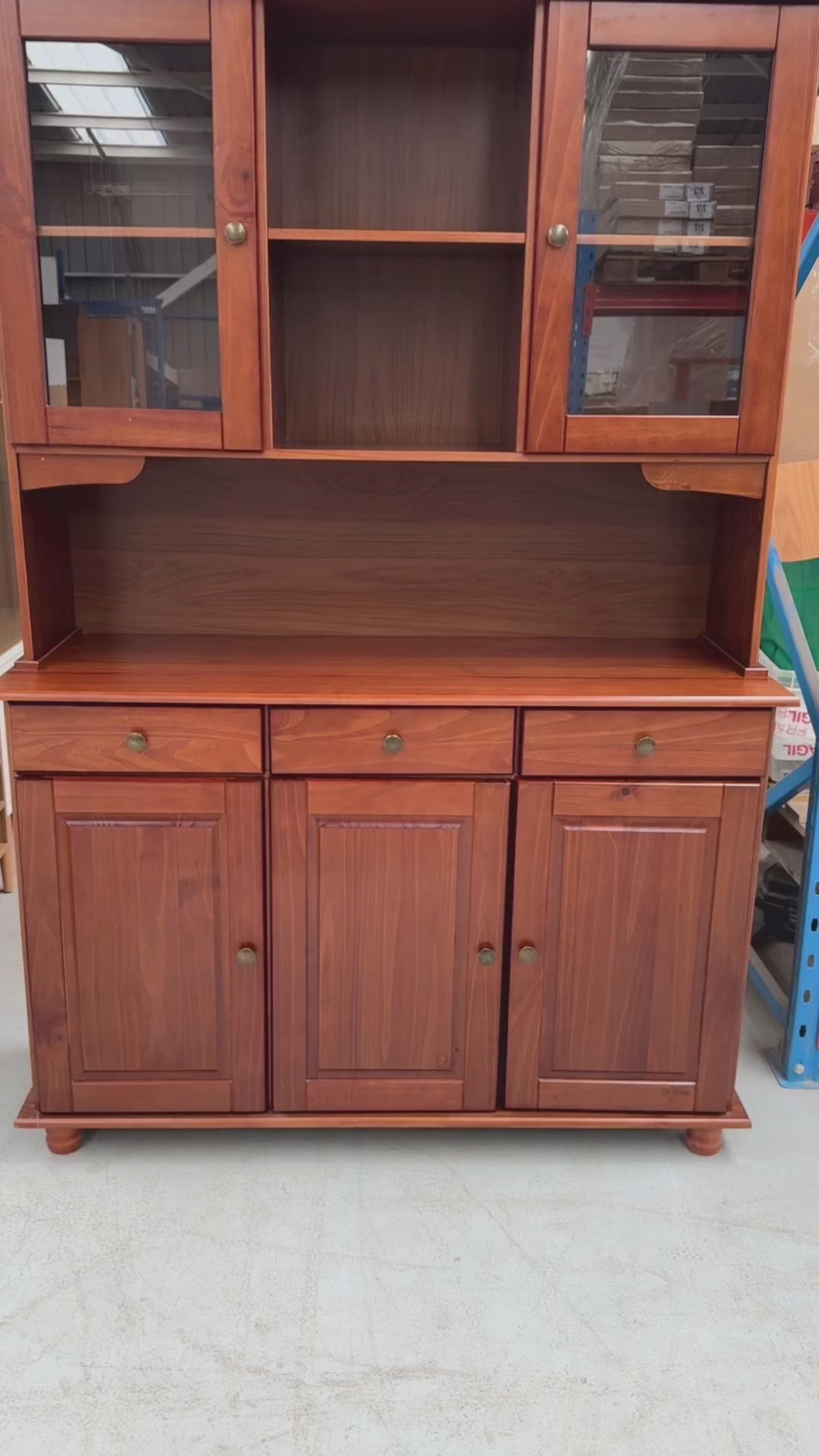 Su diseño atemporal, con puertas de vidrio y amplios compartimentos, te permite exhibir tu vajilla favorita mientras resguardas otros objetos con elegancia y orden. Los detalles en madera tallada y sus tiradores clásicos aportan un toque de distinción, ideal para quienes buscan un equilibrio entre lo rústico y lo refinado.