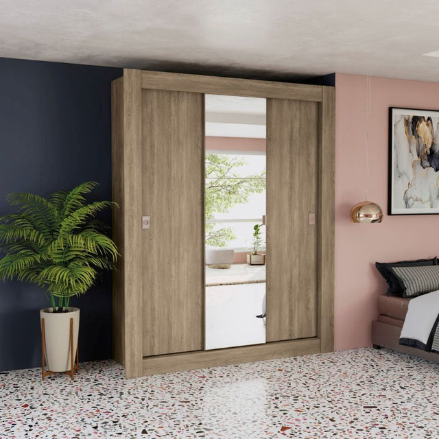 Sus 3 puertas correderas, una de ellas con espejo de cuerpo entero, permiten un uso práctico y eficiente incluso en habitaciones más reducidas, a la vez que el espejo amplía visualmente el ambiente y añade luminosidad. Su interior está diseñado para ofrecer el máximo de organización: espacio para colgar ropa, guardar accesorios y mantener cada cosa en su lugar.