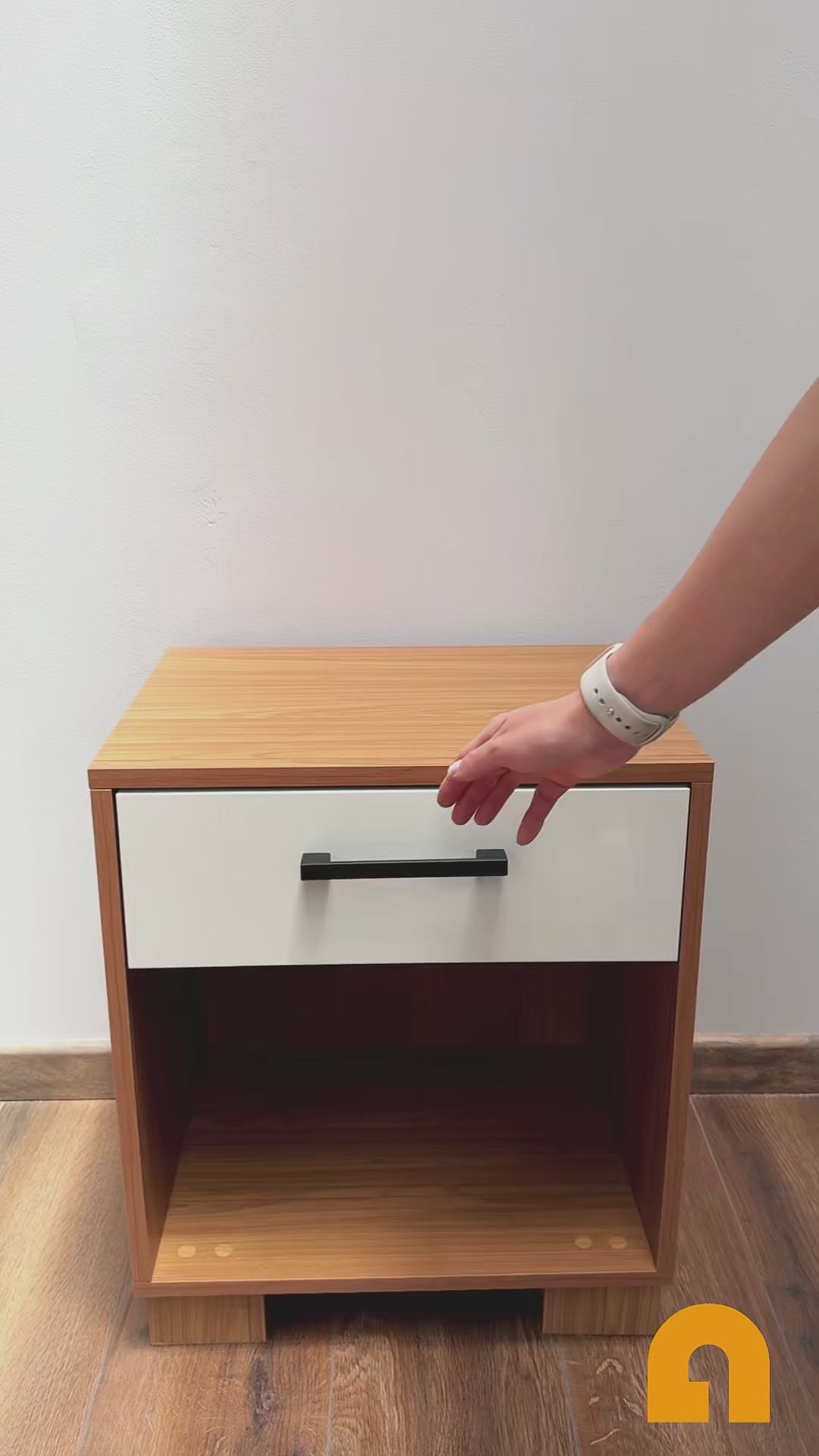 Con un cajón superior práctico y un compartimiento inferior abierto, este velador brinda el espacio ideal para mantener organizados libros, accesorios o lo que quieras tener siempre a mano. Su diseño firme y sencillo se adapta fácilmente a distintos estilos de decoración, convirtiéndolo en una pieza versátil y atemporal.